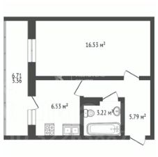 Квартира расположена на 5-м этаже 16-этажного панельного дома. Общая площадь - 33 кв. м, из них жилая площадь - 16 кв. м, площадь кухни - 6 кв. м.