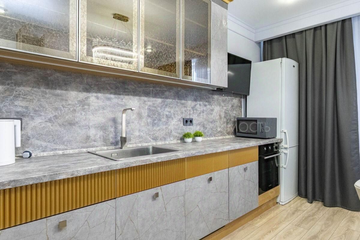 Комфорт: Кухня с гарнитуром и всей необходимой техникой. Две светлые спальни, в родительской — собственная гардеробная.