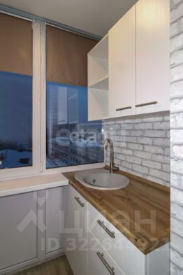 Лоджия оборудована под кухню, в ней установлена кухонная мойка.