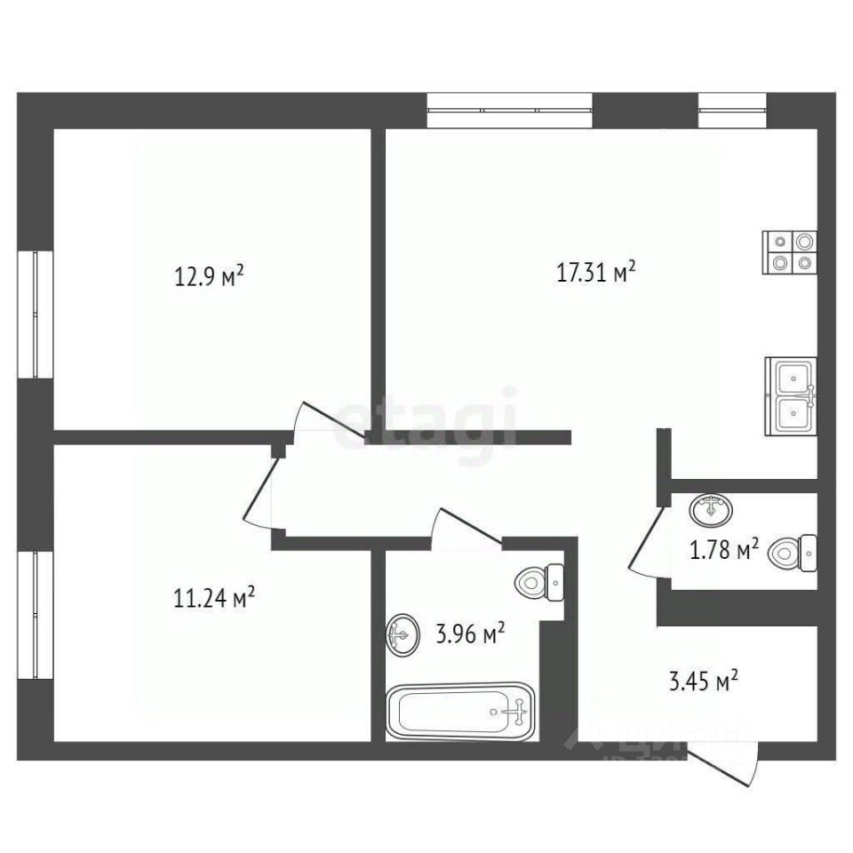 уютную и просторную квартиру формата 2+ с двумя санузлами в современном