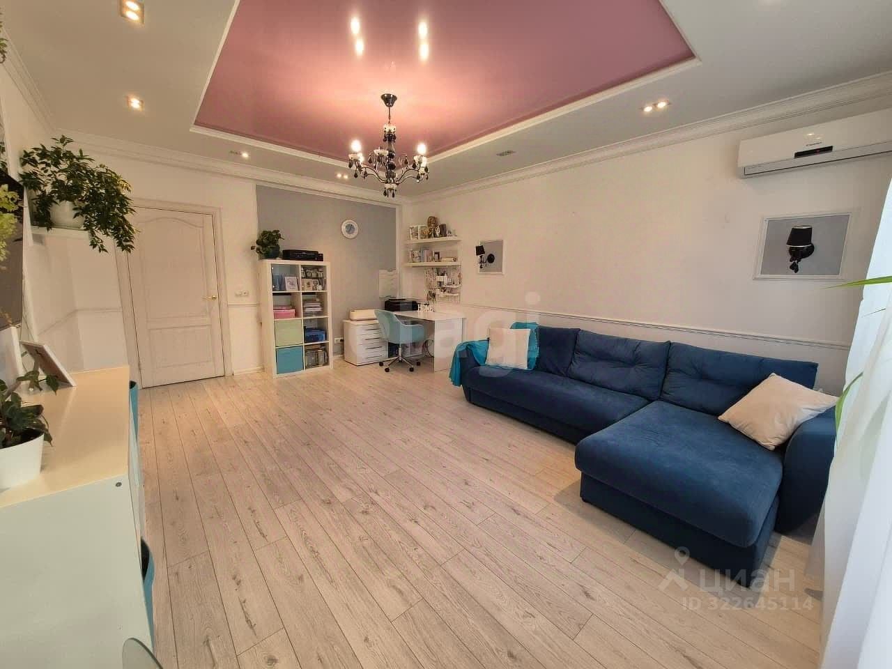 В квартире выполнен косметический ремонт. Большая кухня-гостиная, три изолированные комнаты. Тамбур перед квартирой используется как прихожая.