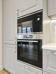 При желании, в кухне-гостиной можно установить настоящий камин. Все подключения, соединения и дымоход имеются, нужно только желание это сделать.