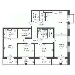 Это просторное жилье включает в себя четыре изолированные комнаты, гарантируя уединение каждому члену семьи. Сердцем квартиры является великолепная кухня-гостиная площадью 25 квадратных метров, идеальное место для семейных вечеров и приема гостей.