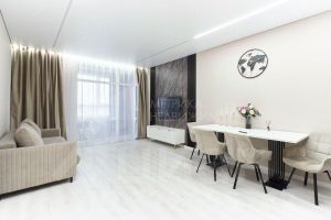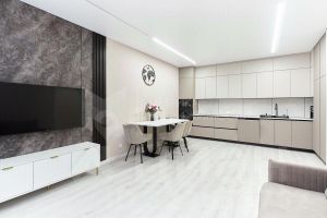 Выполнена уникальная отделка с использованием качественных материалов, сделан дизайнерский ремонт, вложено немерено времени и средств, установлен современный дизайн интерьера, куплена удобная и красивая мебель и новейшая бытовая техника. Все элементы интерьера выполнены с заботой о будущем жильце. Стены украшены натуральной декоративной штукатуркой и дубовыми панелями, пол покрыт теплым кварц-винилом, а гостиная сияет трендовым цветом 2025 года — уют и шик в одном флаконе!