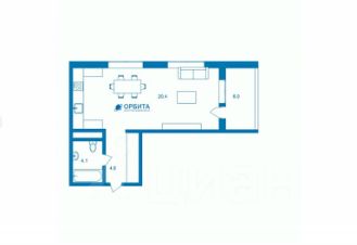 Просторная кухня-гостиная (22,8 кв.м.) правильной формы — отлично подходит для собираний всей семьи и приятных посиделок.