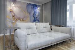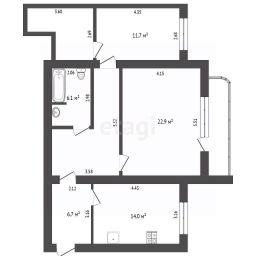 Небанальная планировка, включает в себя прихожую, где комфортно разместится шкаф для верхней одежды, небольшую кухню-гостиную, просторную спальню кабинет с выходом на остекленную лоджию, еще одну жилую комнату, которая может быть в Вашем случае, исходя из потребностей, детской, гостевой комнатой, спортзалом, рабочим кабинетом и огромную гардеробно-хозяйственную комнату.