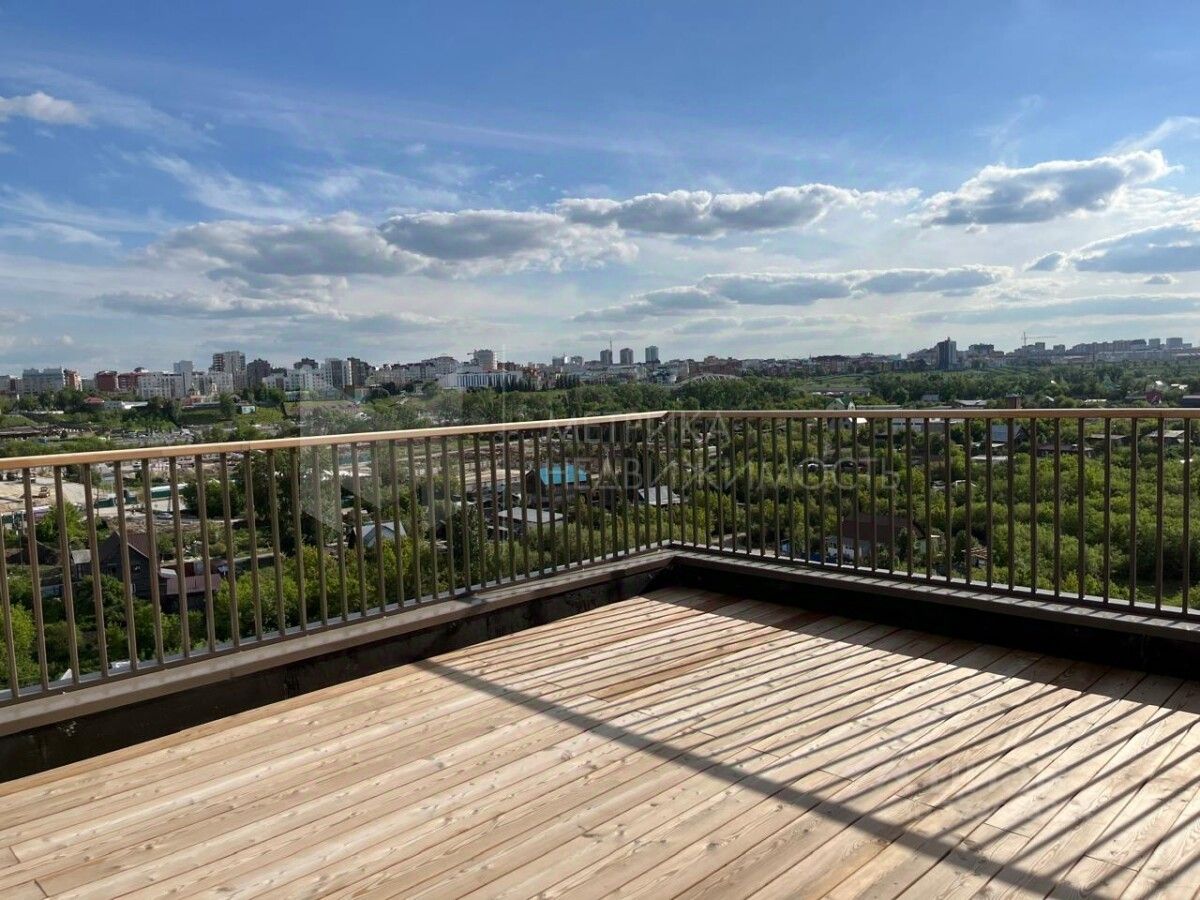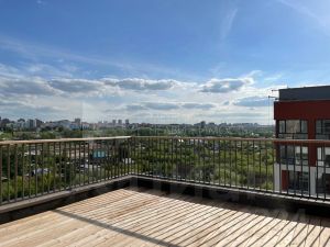 Квартира расположена на комфортном 10-м этаже 10-этажного дома. Большие витражные окна создают ощущение простора. Кухнягостиная 29 м², витражное окно. Шикарная терраса площадью более 30 м². Прихожая: просторная, квадратной формы, предполагает организацию зон хранения. Два санузла. Постирочная, можно переделать в гардеробную. Две комнаты, расположены с одной стороны. Входная дверь: металлическая, внутренняя облицовка — ламинированный МДФ. Стены оштукатурены, выровнены под маяк. Пол цементнопесчаная стяжка с шумоизоляцией. Потолок монолитная плита без швов. Окна пластиковые, тройной энергосберегающий стеклопакет. Электрическая разводка из меди. Водопровод и отопление: трубы из полипропилена и металлопластика, разводка отопления горизонтальная, спрятана в полу (отсутствие стояков у окон). Радиаторы стальные, европейского производства. Телеметрия автоматическая передача показаний в обслуживающую компанию. Лифты бесшумные скоростные лифты премиумкласса.