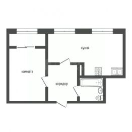 Квартира с эргономичной планировкой: кухня- гостиная с двумя окнами, спальня с выходом на лоджию, прихожая с нишами для мест хранения и вместительный сан.узел.