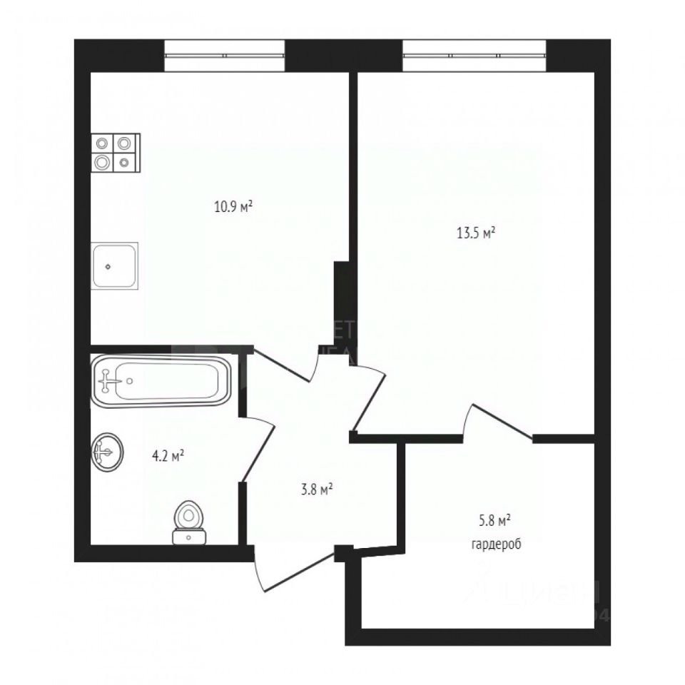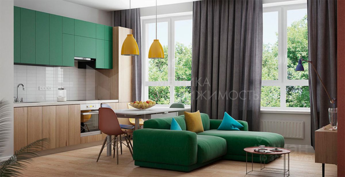 Отличная планировка с гардеробной и просторной кухней-гостиной.