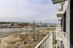 Просторная светлая студия площадью 33,5 кв. м расположена в тихом районе с панорамным видом на лесной массив. Ключевым преимуществом объекта является уникальная планировка, предоставляющая возможность легко зонировать пространство на приватную спальную и гостевую зоны, фактически превращая студию в полноценную однокомнатную квартиру. Основной источник естественного света — большое панорамное окно, которое визуально расширяет пространство, наполняет его светом и открывает доступ к круглогодичному зеленому пейзажу. В зоне кухни также предусмотрено витражное остекление, обеспечивающее дополнительное освещение и поддерживающее ощущение простора.