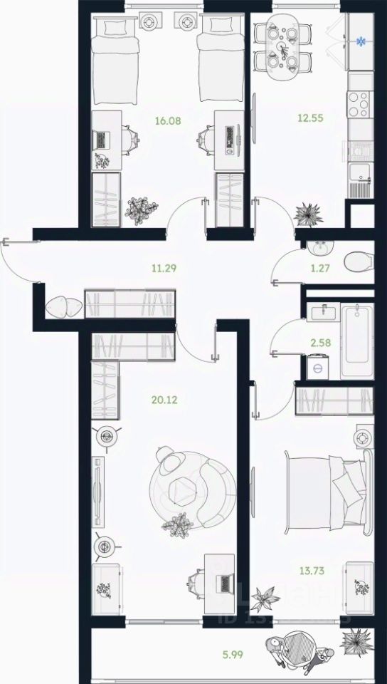 Продаётся 3-комнатная квартира в строящемся доме (ГП-3 (Сосновая, 5к2)), срок сдачи: IV-кв. 2025, общей площадью 80.62 кв.м., на 2 этаже. Новый жилой комплекс от Специализированного застройщика "Сибирь" расположен по адресу: рп. Винзили по ул. Сосновая.