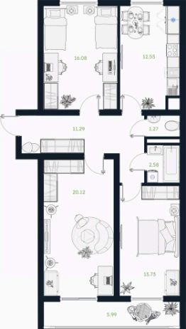 Продаётся 3-комнатная квартира в строящемся доме (ГП-3 (Сосновая, 5к2)), срок сдачи: IV-кв. 2025, общей площадью 80.62 кв.м., на 4 этаже. Новый жилой комплекс от Специализированного застройщика "Сибирь" расположен по адресу: рп. Винзили по ул. Сосновая.