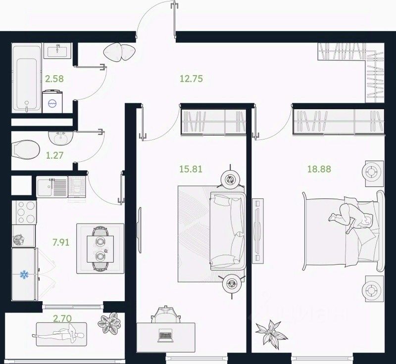 Продаётся 2-комнатная квартира в строящемся доме (ГП-3 (Сосновая, 5к2)), срок сдачи: IV-кв. 2025, общей площадью 60.55 кв.м., на 4 этаже. Новый жилой комплекс от Специализированного застройщика "Сибирь" расположен по адресу: рп. Винзили по ул. Сосновая.