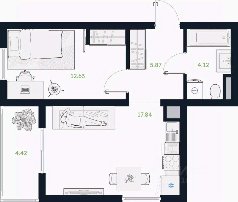 Продаётся 1-комнатная квартира в строящемся доме (ГП-1 (Сосновая, 5к3)), срок сдачи: IV-кв. 2025, общей площадью 42.67 кв.м., на 1 этаже. Новый жилой комплекс от Специализированного застройщика "Сибирь" расположен по адресу: рп. Винзили по ул. Сосновая.