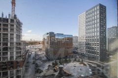 Во дворе детские площадки, спортивные площадки, каток, корт.