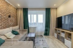 Квартира распашонка, что очень комфортно для проживания семьей, просторная гостиная, где расположен большой диван для приема гостей.