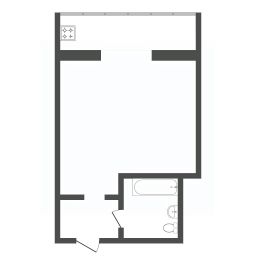 Кухня вынесена на утепленную лоджию, санузел совмещён..