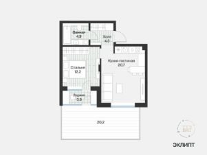 Квартира с урбан-садом. Это прилегающий к дому участок, где летом можно поставить плетёную мебель и выходить, чтобы почитать книгу. Зимой — выпить горячий шоколад на свежем воздухе. Выход в урбан-сад через лоджию в спальне.