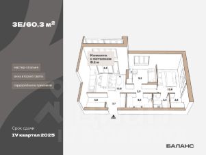 Квртира в формате хайфлэт — одна из комнат с высоким потолком 5,1 метров. Внутри мастер-спальни продуманы отдельный санузел и гардеробная. Вторая гардеробная в прихожей. Выход на лоджию с панорамным остеклением в кухне-гостиной расширит пространство.