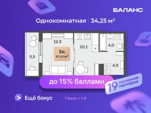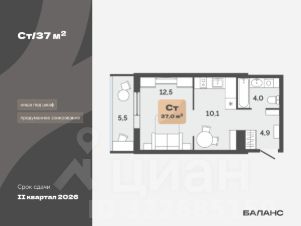 Просторная студия с перегородками, которые разделяют пространство квартиры на две комнаты. В одной из них выход на лоджию с панорамным остеклением— будет больше света. В другой комнате кухня. Вещи можете хранить в холле: здесь есть место для шкафа, комода и обувницы.