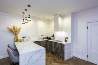 Люстры, техника, кухня производства Италия (привозили под заказ). На кухне столешница кварцевый агломерат 9м2.
