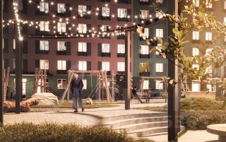 Двор без машин. Для автомобилей сейчас есть гостевая парковка рядом и строится многоуровневый паркинг. Для отдыха во дворе сделали амфитеатр, поставили перголы с гирляндами и подготовили многоуровневое озеленение. Для маленьких жителей готова детская площадка из натуральных материалов. Чтобы было безопасно, по периметру домов работает видеонаблюдение.