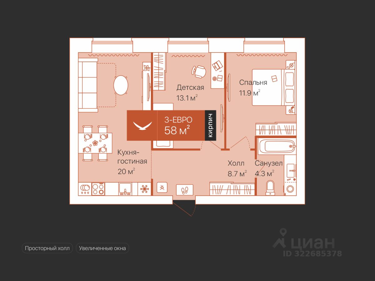 Планировка с двумя отдельным спальнями. Кухня-гостиная и спальня с увеличенными окнами. В холле просторно — есть ниша под шкаф. Внутри готова предчистовая отделка: стены оштукатурены и выровнены по общему уровню, на полу слой цементно-песчаного раствора с дополнительным гидроизоляционным слоем в ванной. Проведена электрика и готовы розетки с выключателями. А ещё установлены сейф-двери и счётчики с телеметрией. Рядом всё, что нужно: Гилёвская роща в 7 минутах на машине, школа и детский сад в пешей доступности, кафе, пункты выдачи и пешеходная аллея возле дома. Способы покупки: — ипотечные программы — обмен вашего жилья на новую квартиру — дистанционная покупка Узнать дополнительную информацию и записаться на встречу в офисе продаж можно по номеру, указанному в объявлении.
