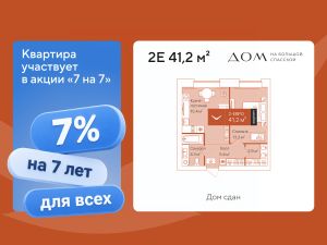 Первоначальный взнос 20% или 1 903 892 руб Евродвухкомнатная квартира площадью 41,2 м²