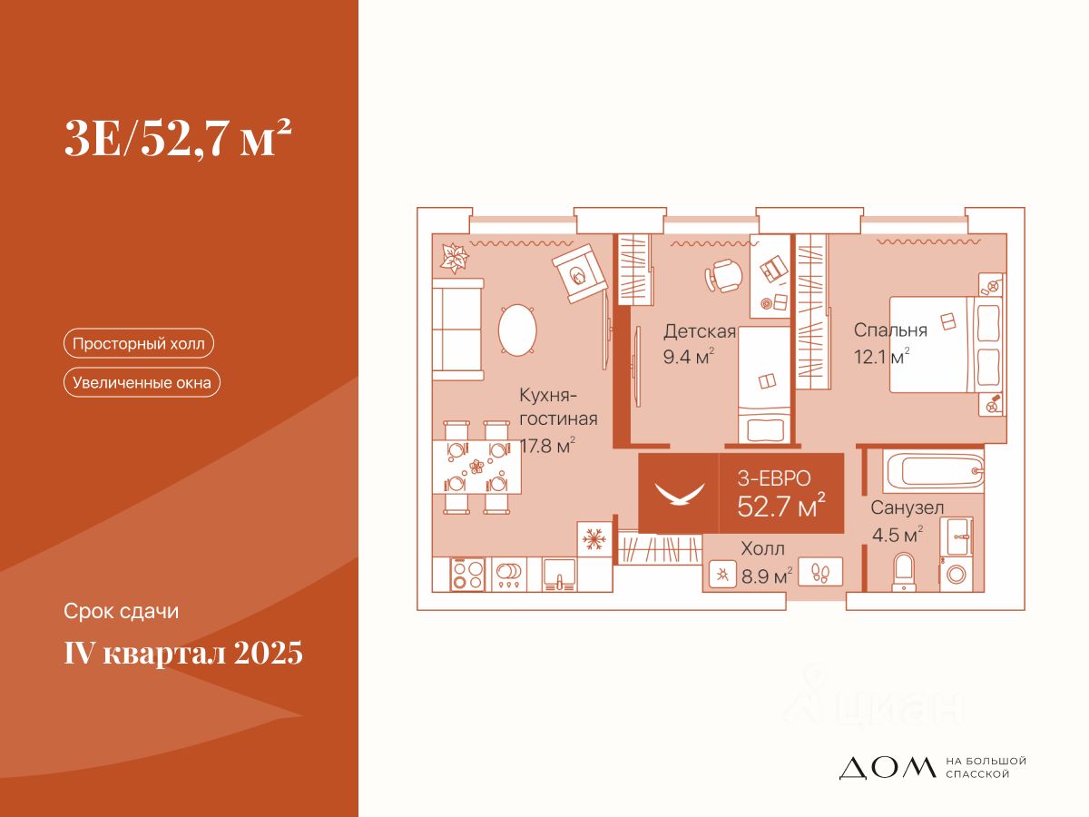 Общая площадь52,7 м²