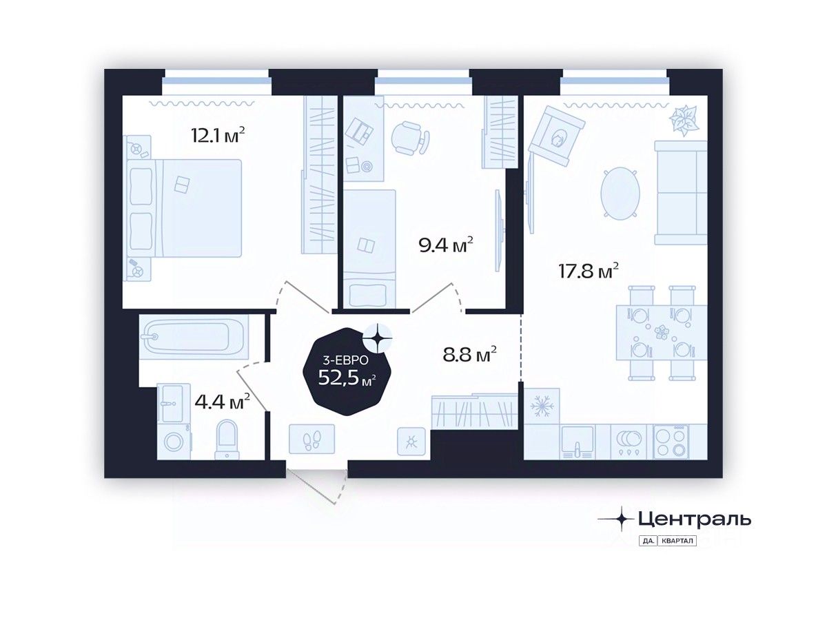 Общая площадь52,5 м²