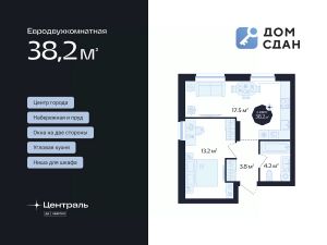Планировка правильной формы и без лишних квадратов. Всё пространство — полезное. В кухне место под угловой гарнитур. В спальне окна на две стороны и предусмотрена гардеробная. Есть возможность перепланировки для создания кухни-гостиной, в которой будет дополнительная зона отдыха.