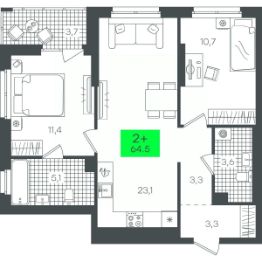 Продаётся 2-комнатная квартира в строящемся доме (3-В6.1 (Малкова, 15)), срок сдачи: III-кв. 2026, общей площадью 64.58 кв.м., на 3 этаже. Компания 4D приступила к строительству нового жилого комплекса "Гранд квартал". Новый ЖК находится в зеленой зоне Калининского района, южнее микрорайона Тюменская слобода.