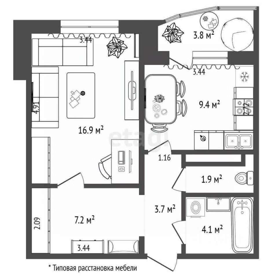 Окна квартиры выходят во двор, на солнечную сторону. Комфортная планировка, включающая просторные комнату и кухню и застекленную лоджию и комфотрный коридор с местом под гардеробную.