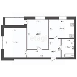 Общая площадь: 80 кв.м., Жилая площадь: 43 кв.м., Просторная кухня: 15 кв.м.