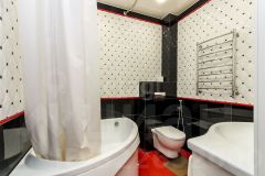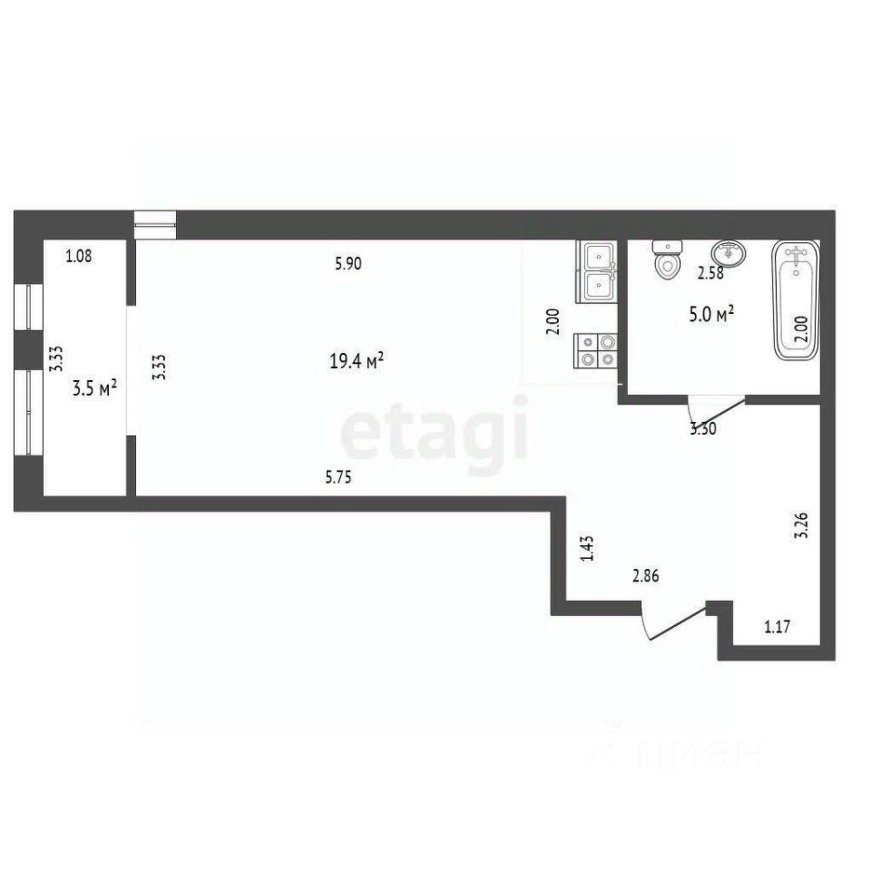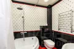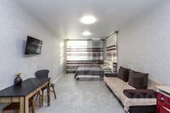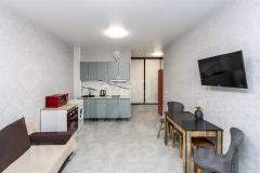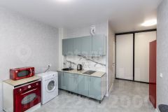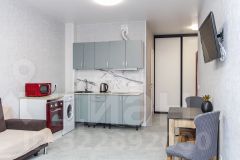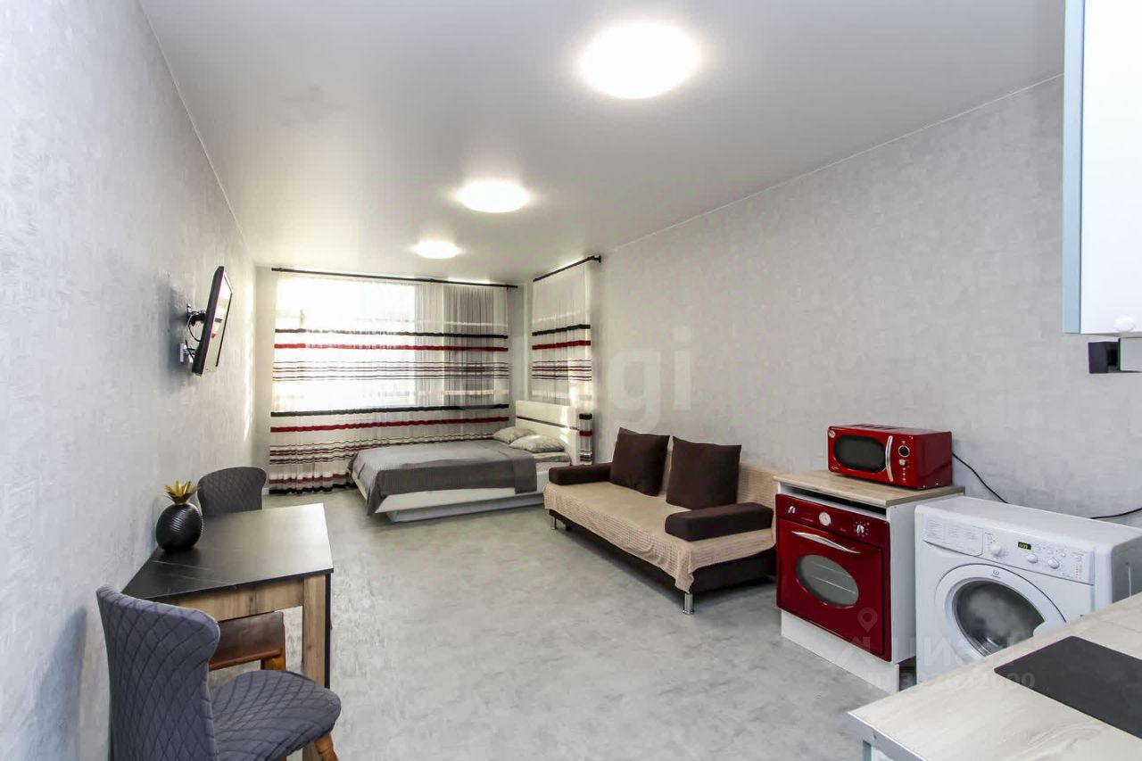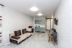 Объект отличается качественной современной отделкой с использованием испанской плитки и надежных материалов, а при продаже остаётся кухонный гарнитур. Комната большая. При желании можно отделить спальню перегородкой или шкафами.