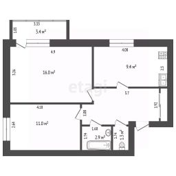 • Просторная комната (16 кв.м.) с выходом на закрытую лоджию здесь хватит места для гостиной, детской или рабочего кабинета.