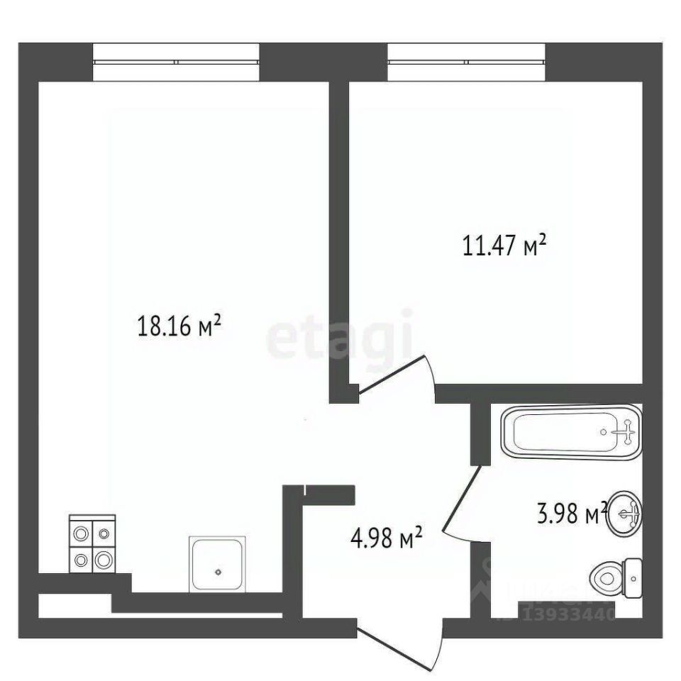 Кухня - гостиная = 18,16 кв.м.