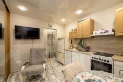 Продается классная квартира 22 м2 в общежитии в 2 мкр. города. Квартира с современным ремонтом, своим сан.узлом и бытовой техникой. Квартира не требует вложений - на полу практичный линолеум, на стенах красивые обои, на потолке натяжной потолок, окно пластиковое, плитка в сан.узле в хорошем состоянии. В зоне кухни установлен новый кухонный гарнитур с посудомоечной машиной и электроплитой. Комната разделена на 2 зоны - кухня и спальня. На входе в блок железная дверь. В доме работает пассажирский лифт. Полы в квартире бетонные. На входе в подъезд установлен домофон. Рядом расположены школа, детский сад, магазины и т.д. Автобусная остановка в 200 метрах. Документы в порядке - один взрослый собственник, обременений и долгов нет.