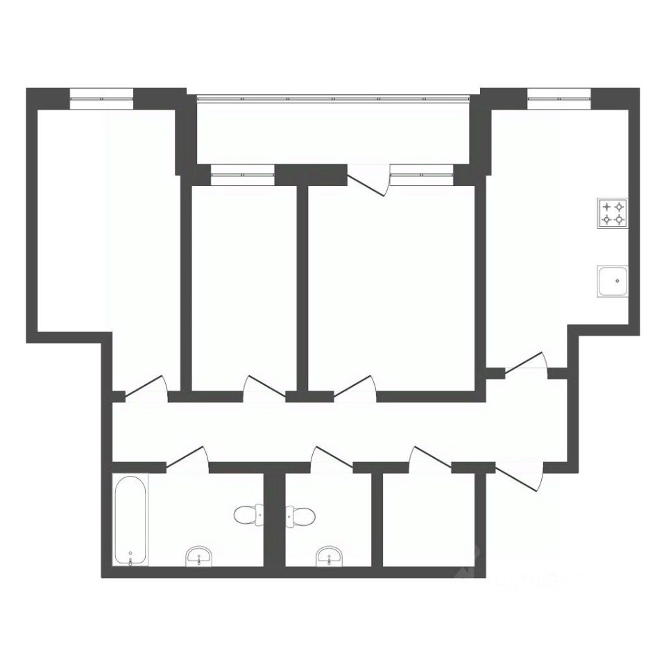 Полноценная трехкомнатная квартира с кухней-гостиной 15 кв.м.