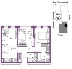 Продается 3комнатная квартира на 2 этаже от застройщика Страна Девелопмент. Площадь квартиры 54,89 кв. м.