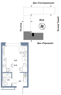 Продается 1комнатная квартира на 2 этаже от застройщика Страна Девелопмент. Площадь квартиры 24,73 кв. м.