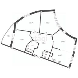 В квартире просторная кухня-гостиная 49кв.м. и 3 изолированные спальные комнаты 22,7; 23,4; 19,8кв.м., раздельные с/у 5,5 и 2,5кв.м., лоджия 7,3кв.м.