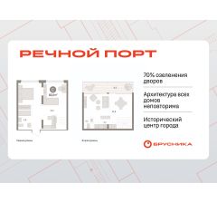 Квартира с кухней-гостиной и двумя спальнями в жилом районе "Речной порт". Особенности планировки: без отделки, двухуровневая, вид во двор, панорамное остекление, свободная планировка, терраса на крыше.