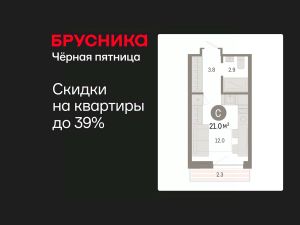 Студия в Октябрьском на Туре. Особенности планировки: предчистовая отделка, балкон.