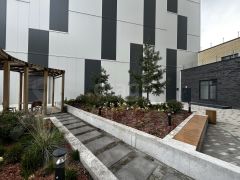 Жилой комплекс обладает развитой инфраструктурой: в непосредственной шаговой доступности расположены современная школа 94, школы 43 и 62, детские сады 134 и 160, частный детский сад "Город детства", а также развивающий центр для детей. Для повседневных нужд в пешей доступности находится торговый центр "Зеленый берег" с круглосуточным гипермаркетом "Лента", супермаркеты "Магнит", "Пятерочка" и "Метрополис", а также медицинский центр "Доктор А". Эксплуатационные расходы минимизированы благодаря собственной газовой котельной, что позволяет экономить до 20% на коммунальных платежах. На прилегающей территории организовано круглосуточное видеонаблюдение, двор закрытого типа с хорошим освещением, а на подъездах установлены домофоны. В доме функционируют два лифта, обеспечивающие бесперебойное сообщение между этажами.