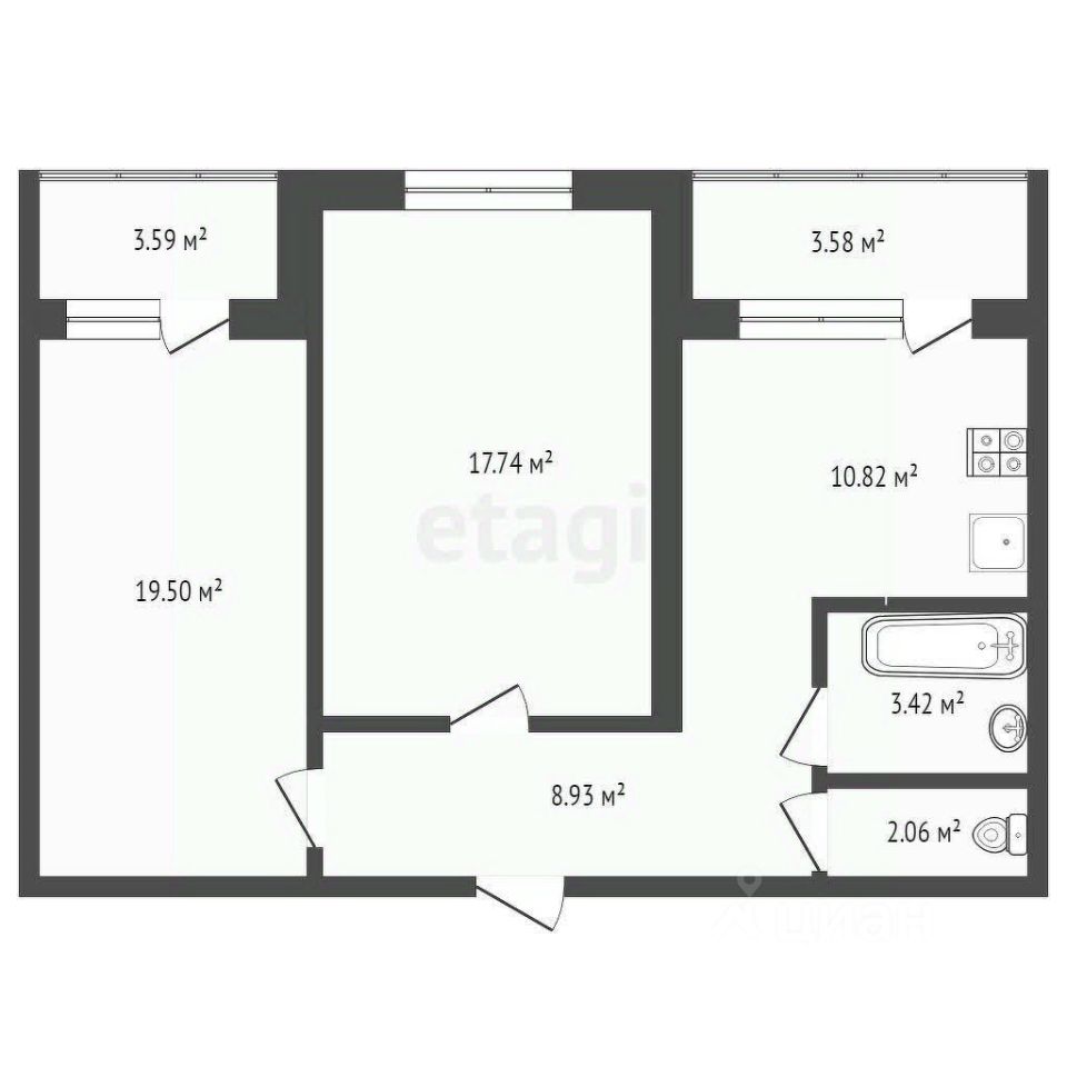- две жилых комнаты 17,7 и 19,5 кв.м;