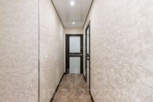 В квартире сделан качественный современный ремонт. На полу линолеум, на стенах обои, потолок натяжной.