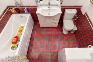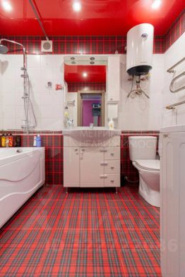 Практичный ремонт ламинат серого цвета, плитка в ванной, натяжные потолки