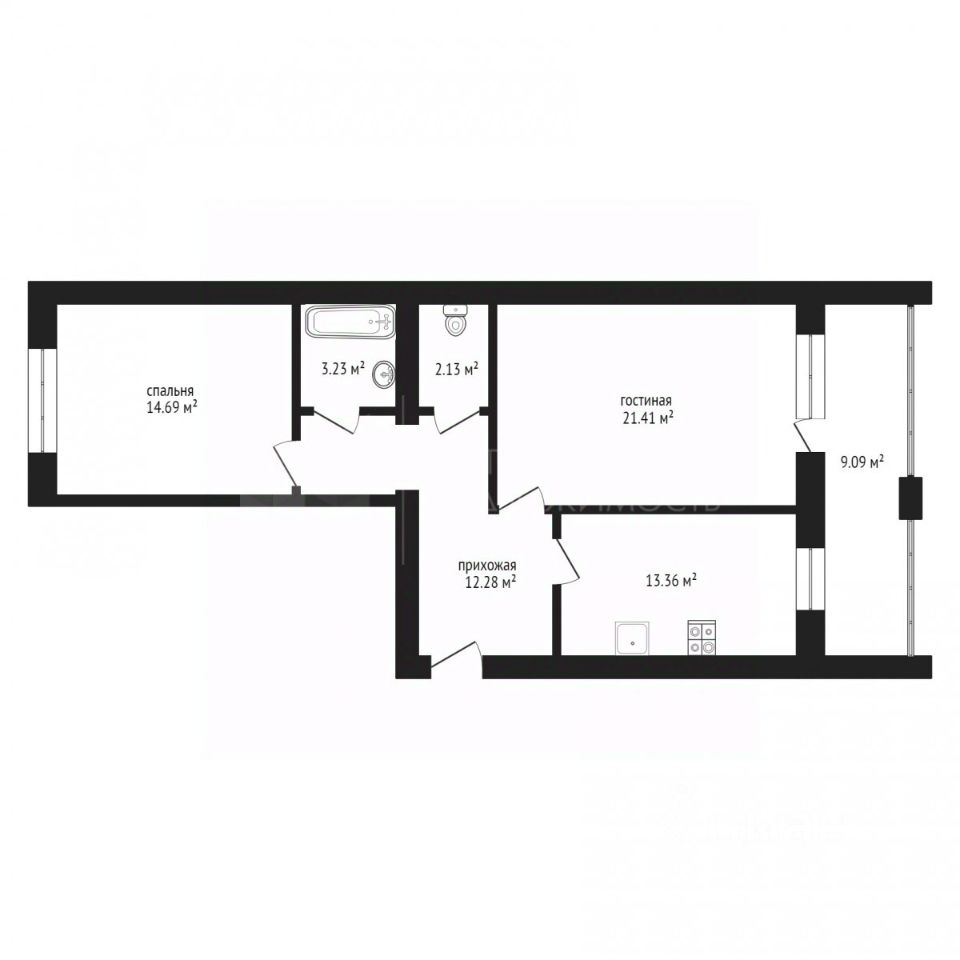 Общая площадь 72,8 кв.м плюс лоджия 6 квадратных метров.