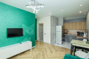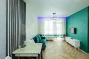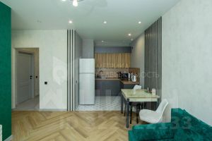 - В квартире сделан ремонт по дизайн проекту, никто не жил! Формат 1: кухня гостинная с отдельной зоной для приготовления еды, комната с гардеробом и выходом в сан узел! Балкон!!!